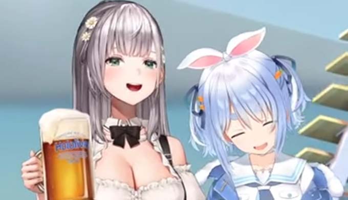 2022年2月14日配信【壺男】バレンタイン飲酒!久々にやっちゃいますか、っと。inノエスタオフコラボ【白銀ノエル/兎田ぺこら】より。オフコラボ中の白銀ノエルと兎田ぺこら。元気をもらう存在「推し」についての話題になり…