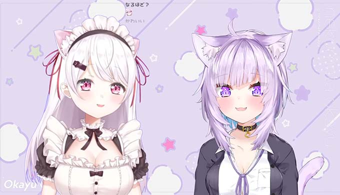 2021年7月19日配信【 #神岡家 】神岡家の気まぐれにゃじお 第18回👻🍙【椎名唯華と猫又おかゆ】内での一コマ。