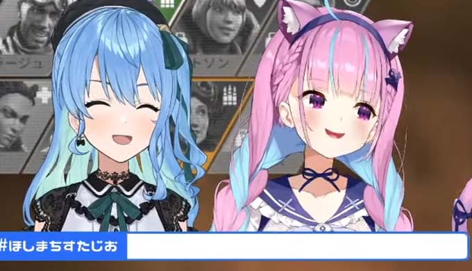 2021年4月4日配信【APEX】あくたんに守られたいあぺ【ホロライブ / 星街すいせい】での一コマ。一緒にAPEXをして遊ぶ星街すいせい(すいちゃん)と湊あくあ(あくたん)。